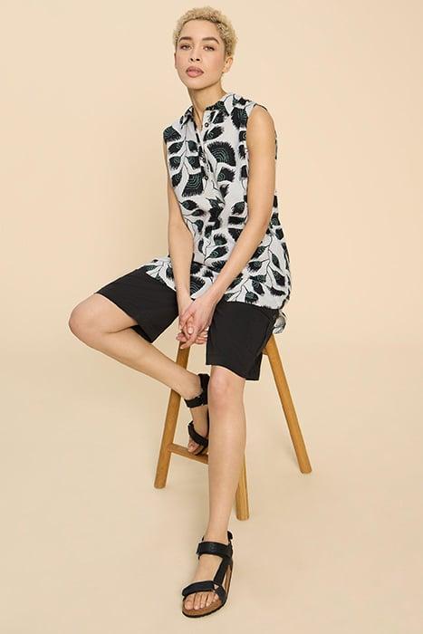 EVELYN SLEEVELE LINEN TUNIC BLACK PRINTED