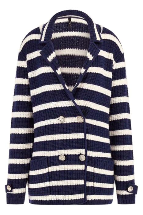 GAIA SWEATER WAFFLE BLUE AND WHITE CARDIGAN STRIP