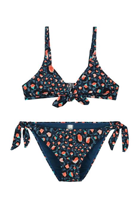 GIRLS LEOPARD SPOT KNOTTED TRIANGLE BIKINI POSEIDON BLUE