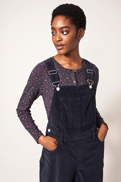 Embrace the art of refined dressing with the Kelly Wide Leg Cord Dungaree Dk Grey, crafted for those who appreciate quality and comfort.
