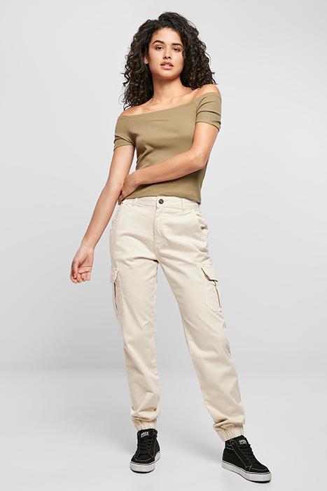 LADIES HIGH WAIST CARGO PANTS WHITESAND