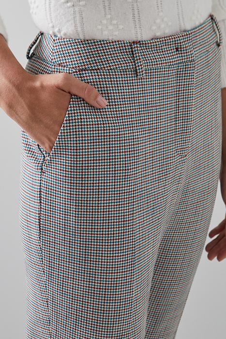 Chic, autumnal tailoring, the Nina trousers in our LKB Conscious collection work perfectly as part of a suit or with mismatched separates. Crafted in Europe from an Italian LENZING™ ECOVERO™ viscose* fabric in a teal and red houndstooth check, these tailored trousers sit on the waist with belt loops, have side pockets and a slim, tapered shape. Team them with the matching Nina peplum jacket to create a stylish full suit.