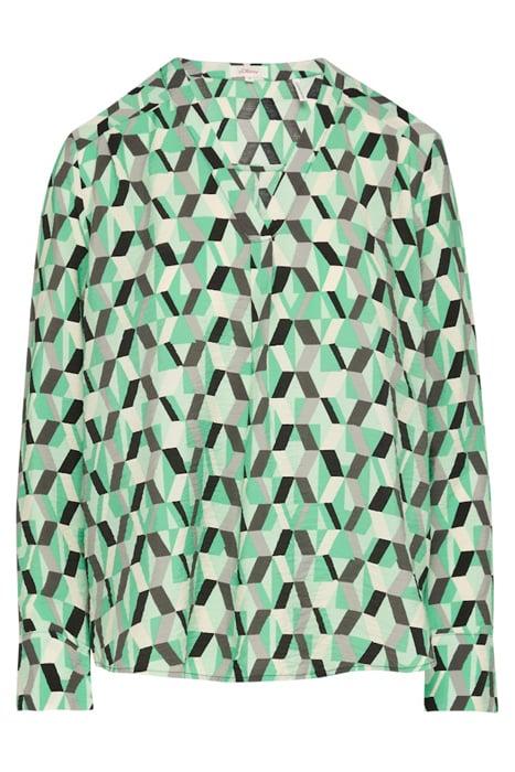 Back part: yoke; Details: pleat; Fit Overall: regular fit; Hem: rounded hem, side slit at hem; Material: viscose blend; Neckline: v neckline; Occasion: casual; Print: all over print; Quality: flowing; Sleeve: cuffs, long sleeves; Style: casual, feminine
