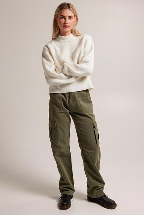 America Today Women'S Pants. The Paloma Is A Straight Fit Cargo Pant. The Pants Have A Waistband With A Button Closure, Two Side Pockets, Two Flap Pockets On The Back And Two Large Cargo Pockets On The Side Of The Pants.