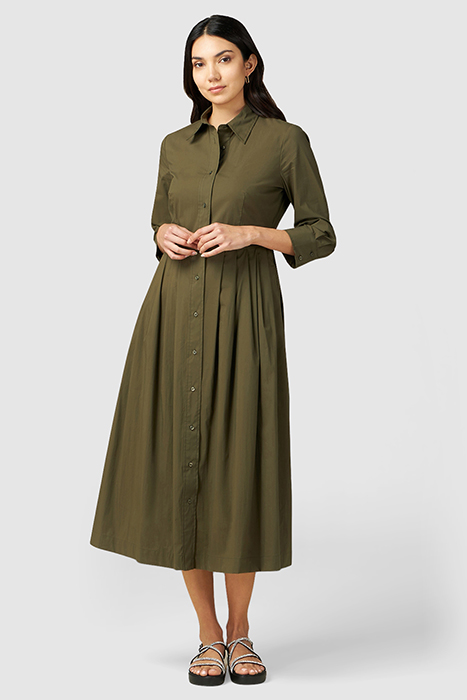 Long Chemisier Dress In Cool, Solid Colour Stretch Cotton Poplin