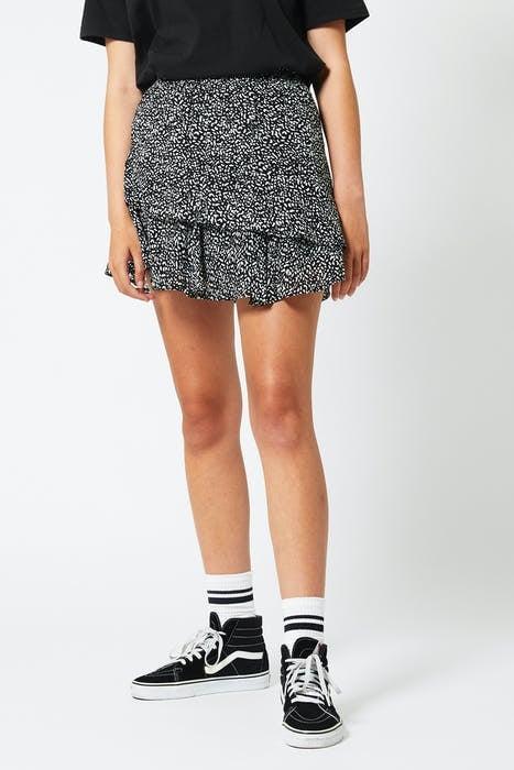 America Today dames rok. De Riley rok heeft een elastische tailleband, verschillende lagen en een all over print. Het model is voorzien van een onderrok.