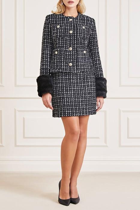 SECRET TWEED JACKET BLACK AND WHITE CROPPED COMB