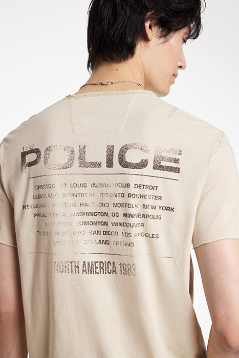 SS RAW EDGE SHOULDER DETAIL TEE - THE POLICE TOUR TEE ALMOND