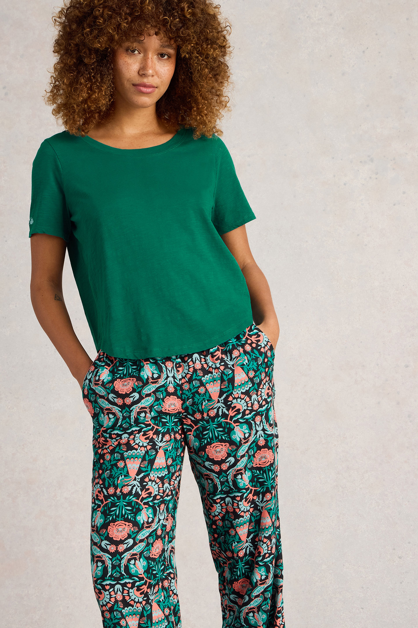 Main: 69% Organic Cotton, 31% Livaeco™ Viscose; Embellishment: 100% Polyester