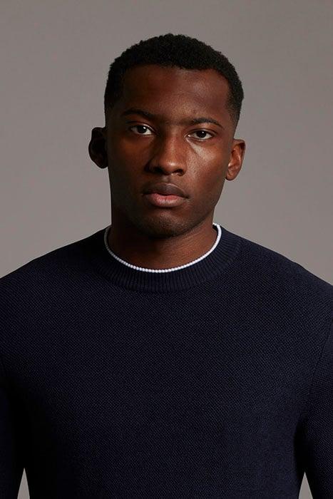 BLACK EAGLE TEXTURE KNIT CREW NECK DARK NAVY