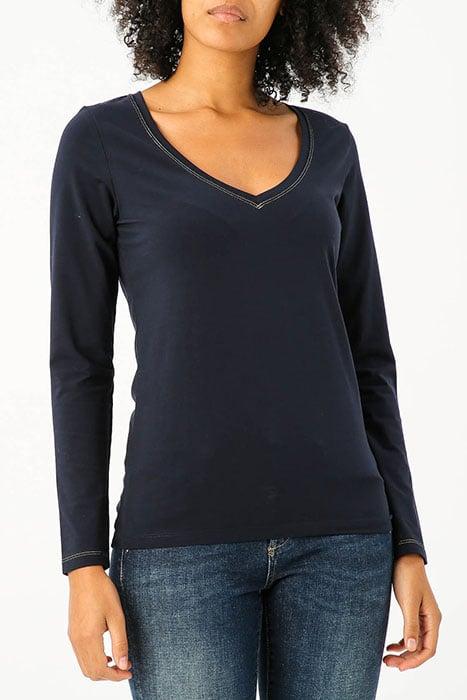 V-NECK T-SHIRT LS LUREX STITCH BLUE