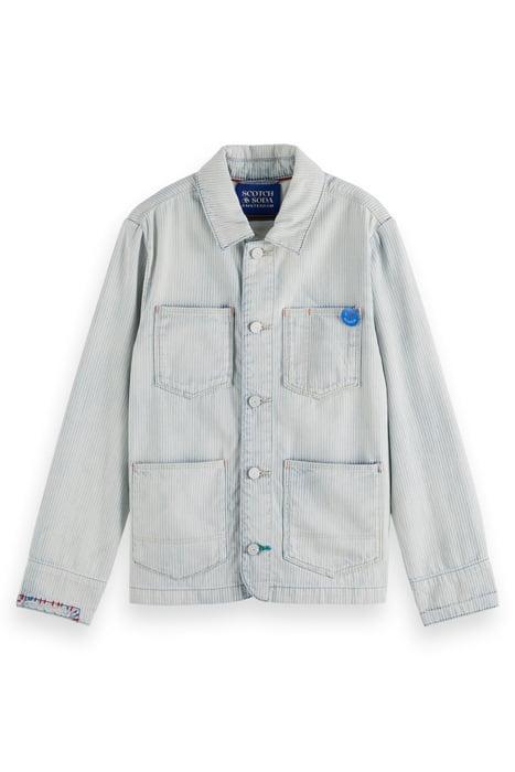 WASHED INDIGO STRIPED DENIM WORKWEAR JACKET INDIGO STRIPE