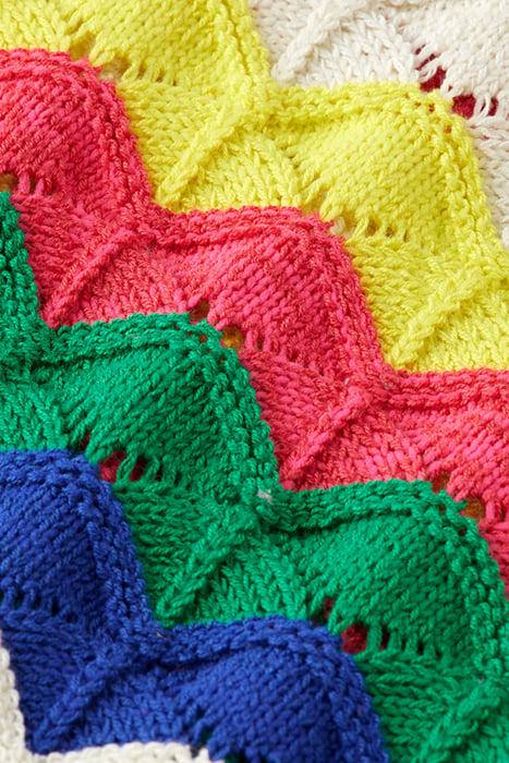 WAVE STITCH KNITTED SHORT SLEEVE PULLOVER PINK WAVE STRIPE