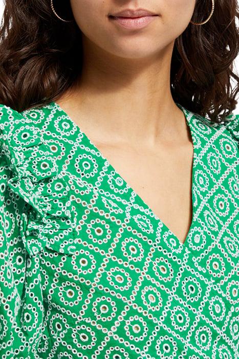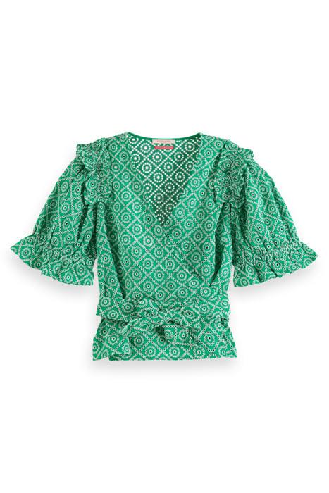 WRAP TOP WITH BRODERIE ANGLAISE GREEN BRODERIE ANGLAISE